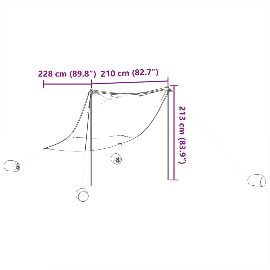 vidaXL pludmales nojume ar smilšu enkuriem, pelēka, 214x236 cm