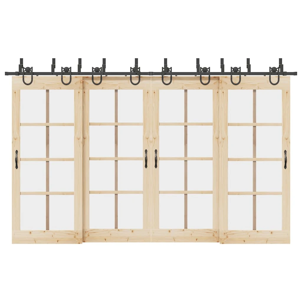 Izmantojot šo bīdāmo durvju aparatūras komplektu, varat viegli iestatīt dubultās sliedes, lai durvju pāris varētu slīdēt viena otrai priekšā un aiz muguras.