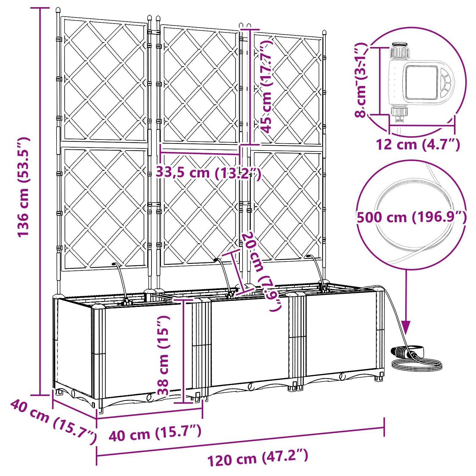 vidaXL puķu kaste, 3 līmeņi, 60x18,5x110 cm, melna, priedes masīvkoks