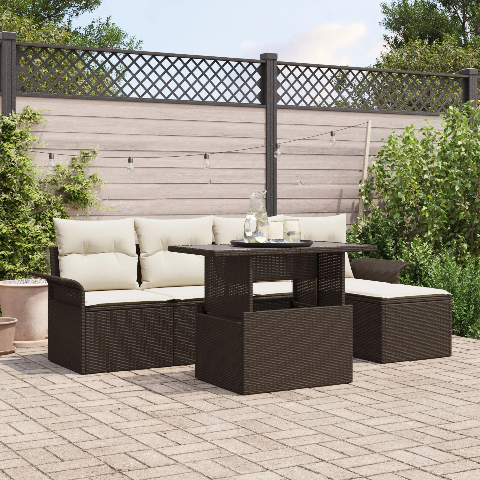 vidaXL 10-daļīgs dārza dīvāna komplekts ar matračiem, pelēka PE pinums