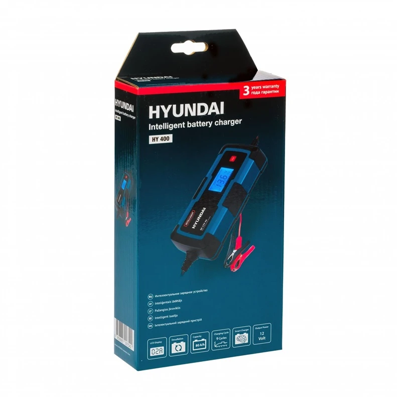 Zīmols- Hyundai. Modelis- HY410. Piemērots akumulatoriem- AGM akumulatori (Pb AGM), Tradicionālie svina akumulatori ar šķidru elektrolītu (Pb Wet), Neapkalpojamie tradicionālie svina akumulatori ar šķidru elektrolītu (Pb Wet MF), Gēla akumulatori (Pb gel), Start stop tipa akumulatori. Uzlādes spriegums- 6 - 12V. Ieteicamā akumulatora kapacitāte- 110 - 160Ah. Svars- 1 kg. Spriegums- 220 - 240V. Maksimālā uzlādes strāva- 4 A. Vidējā lādēšanas strāva- 4 A. Automātiskais lādētājs- Jā. Obligātā garantija- 24 mēn. Garantija juridiskām personām- 12 mēn.