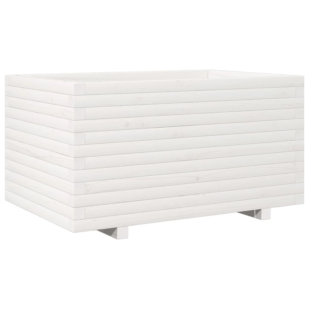 vidaXL dārza puķu kaste, balta, 90x60x49,5 cm, priedes masīvkoks