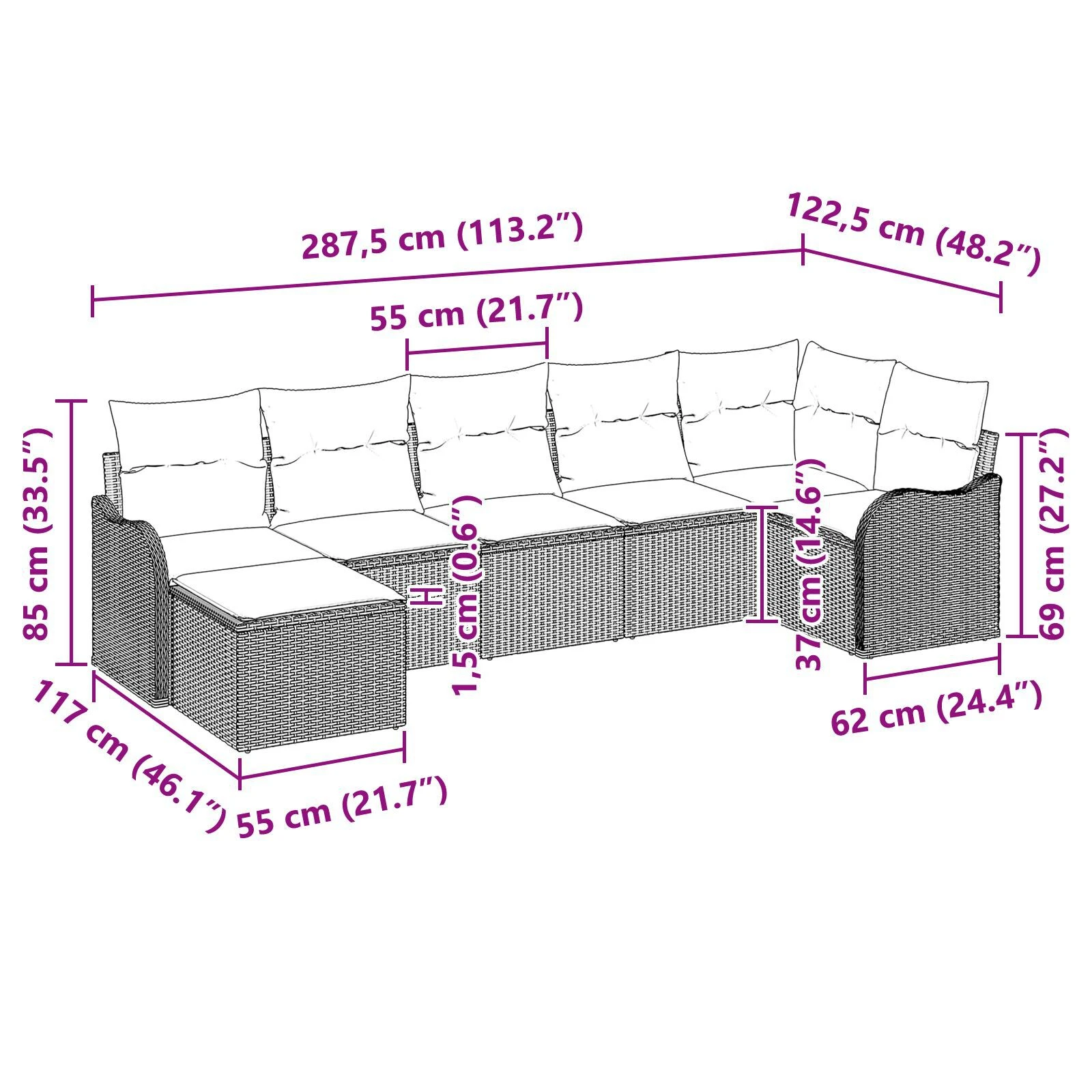 vidaXL 5-daļīgs dārza mēbeļu komplekts ar matračiem, PE rotangpalma