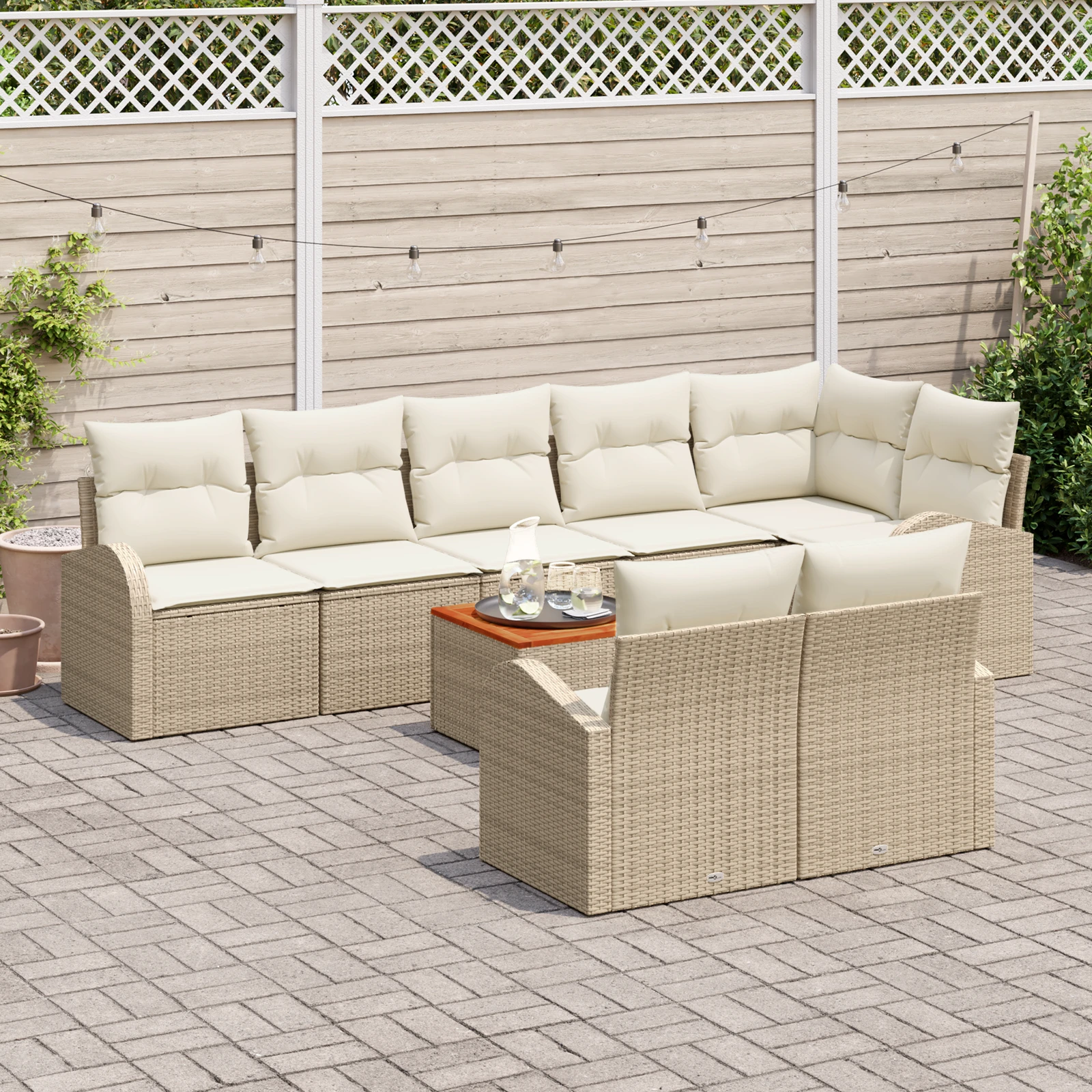 vidaXL 8-daļīgs dārza dīvāna komplekts, matrači, bēša PE rotangpalma