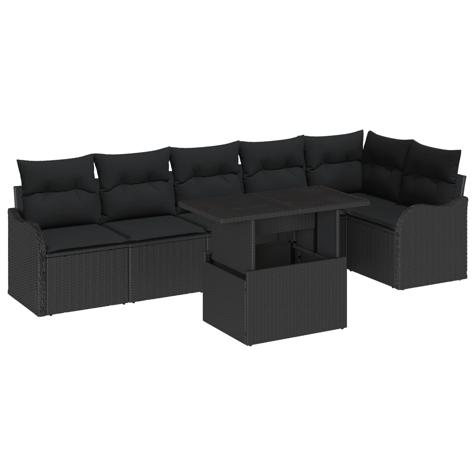 vidaXL Dārza dīvānu komplekts ar spilvenu 7 pcs Melna Polirāts