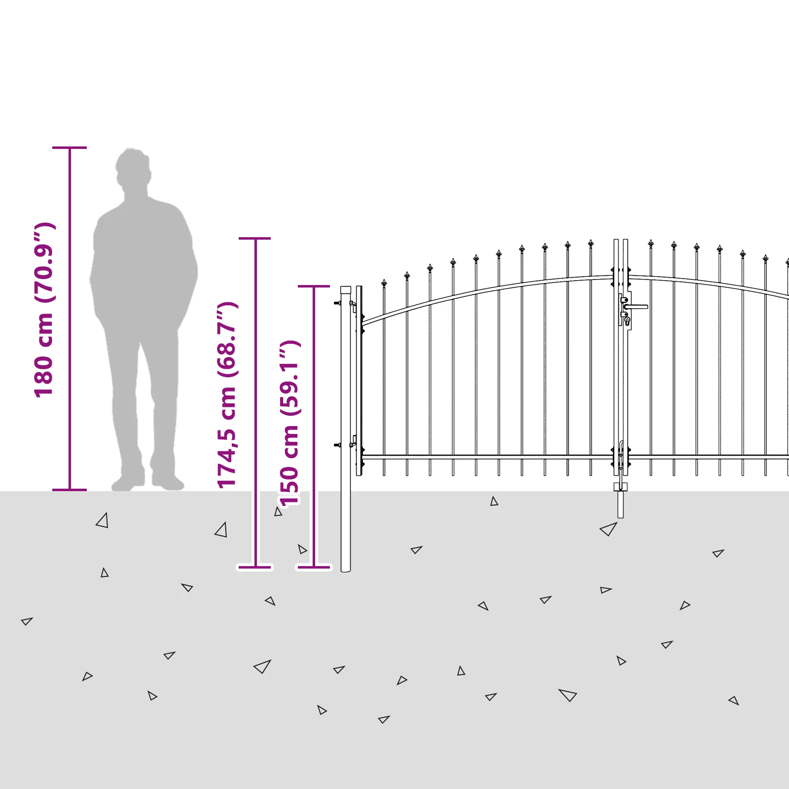 vidaXL dārza vārti, sudrabaini, 300x125 cm, cinkots tērauds, sieta