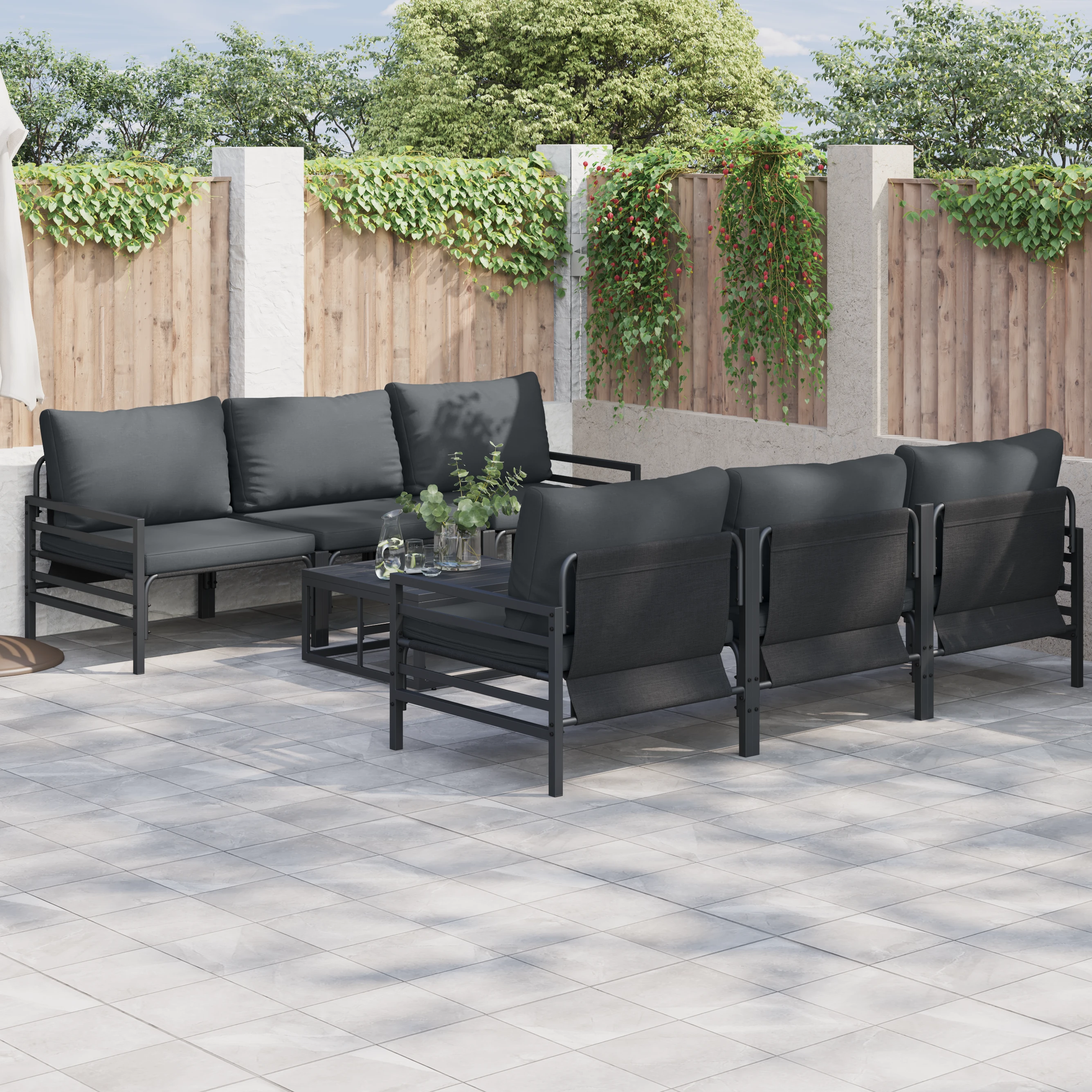 vidaXL 11-daļīgs dārza dīvāna komplekts, matrači, melna PE rotangpalma
