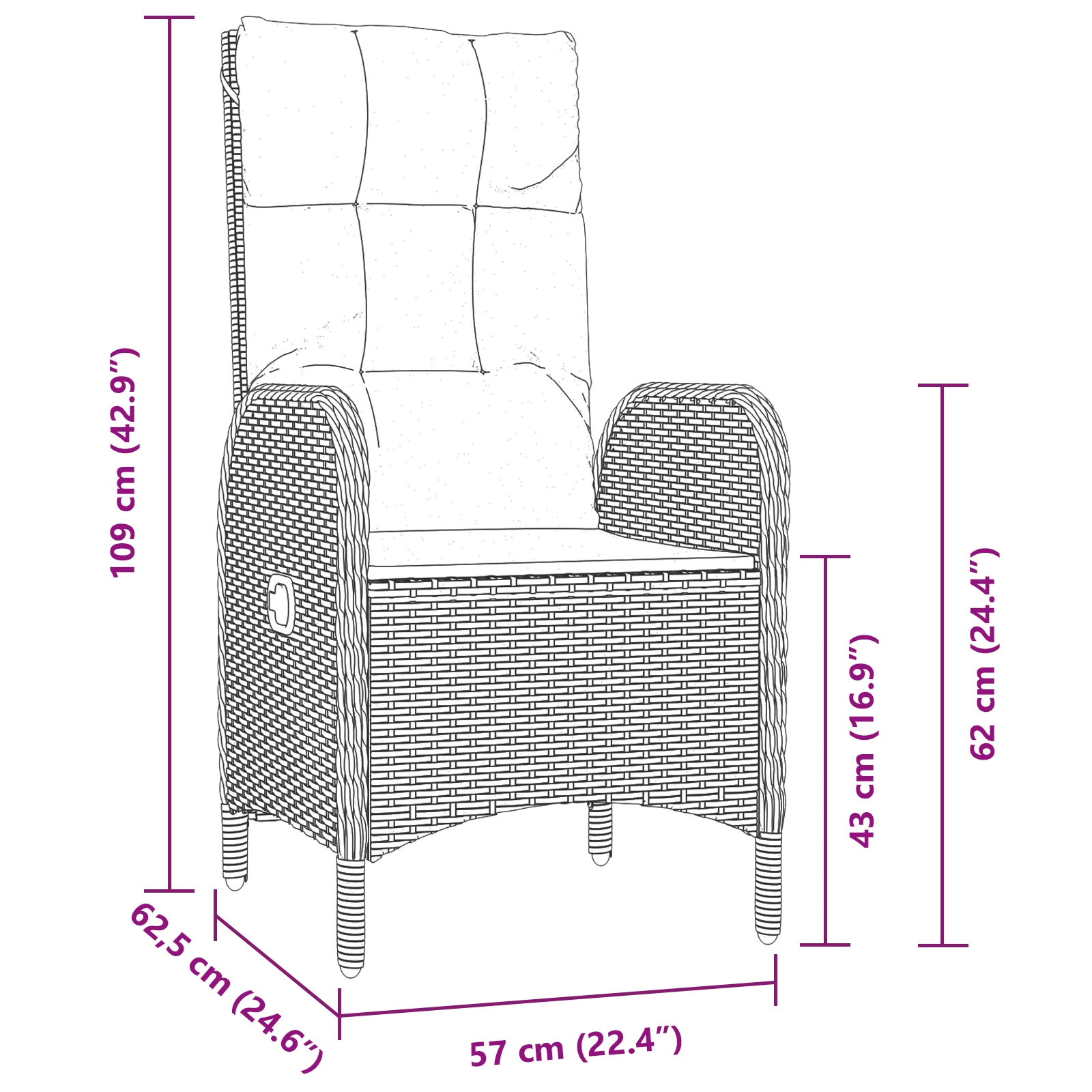 vidaXL 7-daļīgs dārza dīvāna komplekts, matrači, pelēka PE rotangpalma