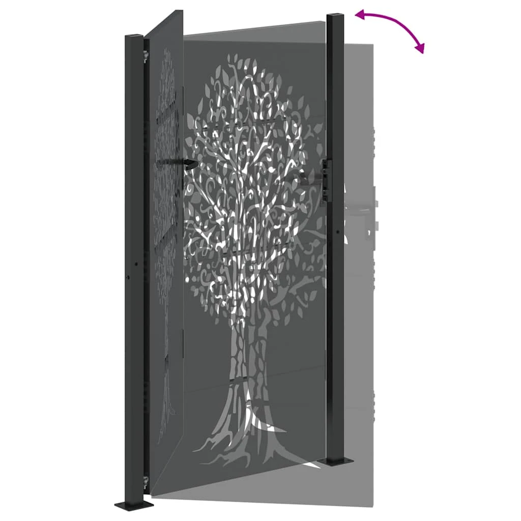 Šis metāla dārza vārtiņš ir mūsdienīga dizaina piemērs, ar vienkāršām līnijām un minimālu dekoru, kas ideāli piemērots jebkura dārza vai terases estētikai. Izgatavots no pulverkrāsota tērauda, tas ir ļoti izturīgs un piemērots pavasara un vasaras sezonām. Stilīgais lāzergriezuma koka dizains piešķir māksliniecisku elementu, kas nemanāmi saplūst ar apkārtnes ainavu, nodrošinot funkcionalitāti un drošību.
