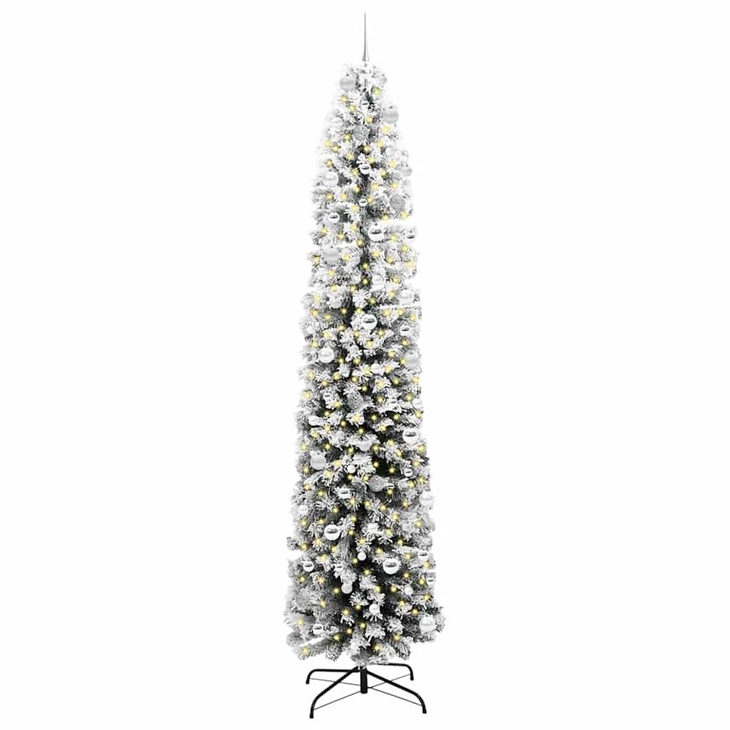 vidaXL mākslīgā Ziemassvētku egle ar sniegu, šaura, 240 cm, PVC&PE