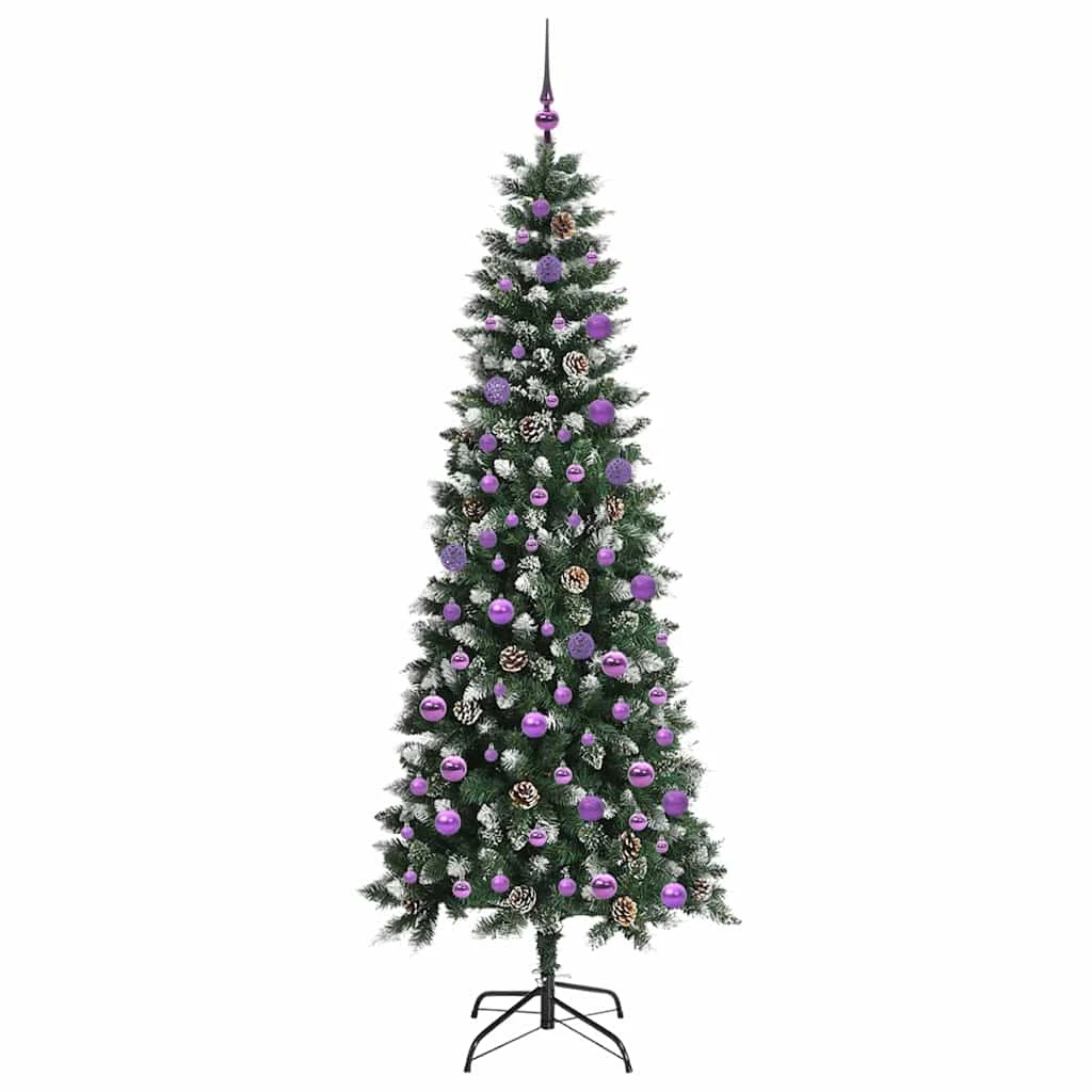 vidaXL izgaismota Ziemassvētku egle ar rotājumiem, zaļa, 150 cm