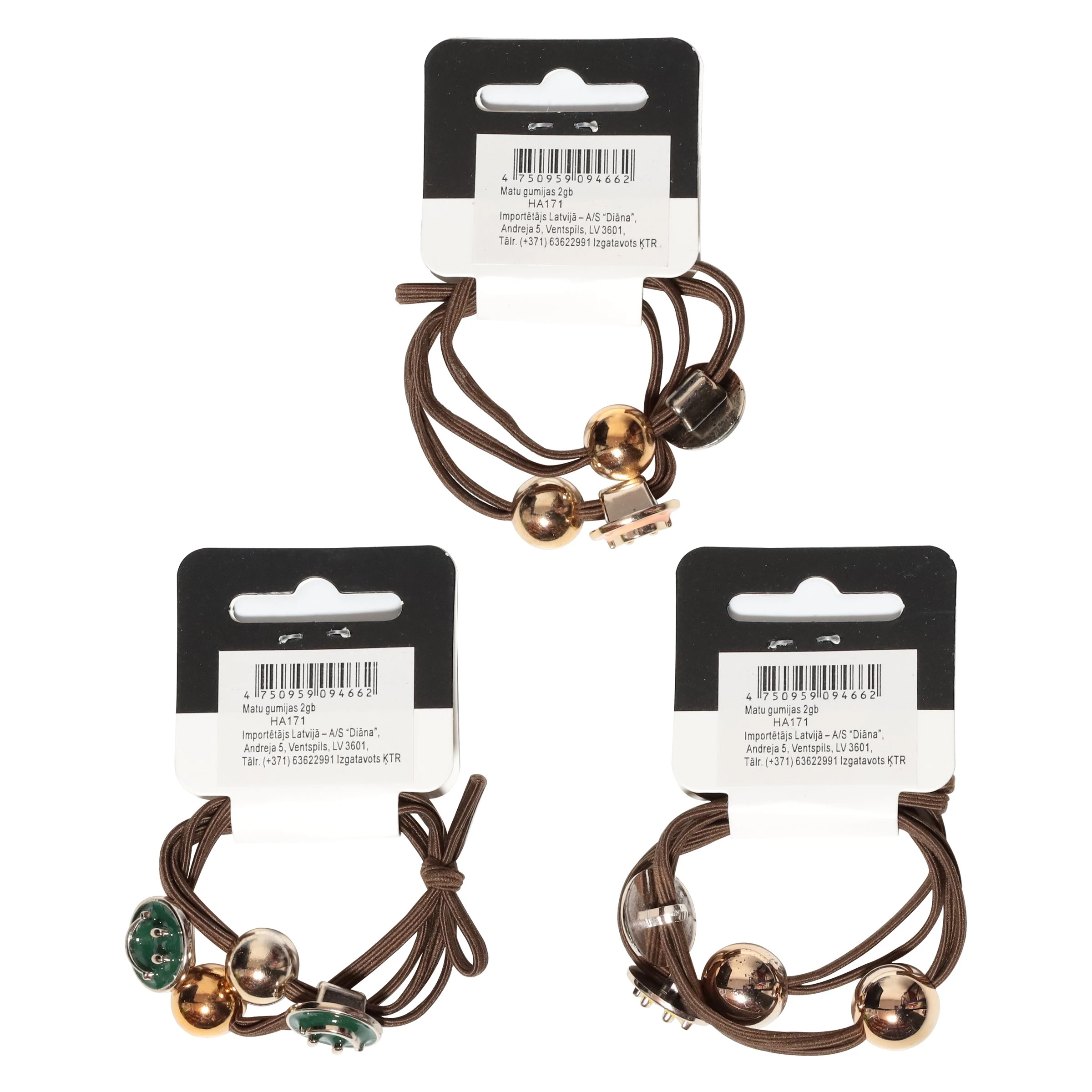 Matu gumijas ar dekoratīviem elementiem ir stilīgs un praktisks aksesuārs ikdienas frizūru veidošanai. Komplektā ietilpst divas izturīgas elastīgās gumijas, kas nodrošina drošu un ērtu matu fiksāciju visas dienas garumā. Dekoratīvie akcenti piešķir matiem eleganci un padara šīs gumijas piemērotas gan ikdienas lietošanai, gan īpašiem gadījumiem. Izgatavotas no kvalitatīviem materiāliem, piemērotas dažādiem matu tipiem. Komplektā 2 gb.