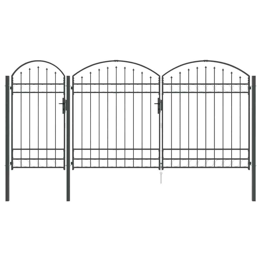 Šie izturīgie dārza žoga vārti ar izliekto augšdaļu ir stilīgi un funkcionāli, ideāli piemēroti dārziem un terasēm. Izgatavoti no gluda, ūdens izturīga tērauda, tie piešķir elegantu izskatu un uzlabo drošību dārzā. Modernais dizains lieliski iederas mūsdienu ainavā, kalpojot gan praktiskiem, gan dekoratīviem mērķiem.