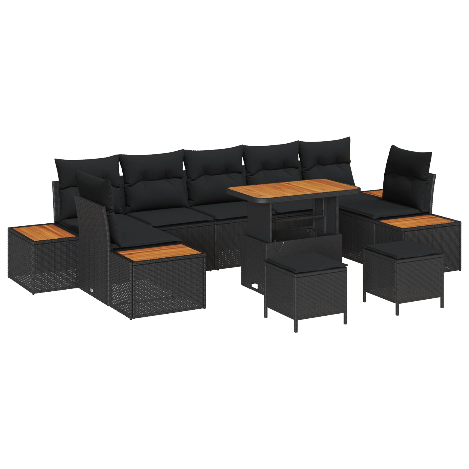 vidaXL Dārza dīvānu komplekts ar spilvenu 9 pcs Melns un Krēmkrāsa