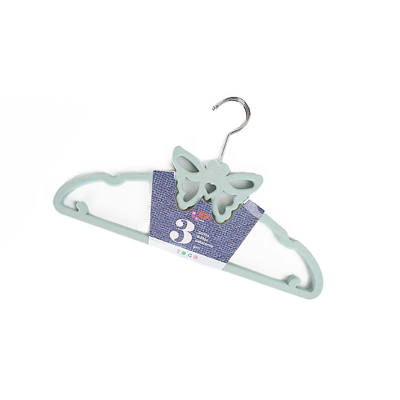 BESK samta drēbju pakaramie ar tauriņa dekoru ir izgatavoti no izturīgas plastmasas ar samta pārklājumu, kas efektīvi pasargā apģērbu no skrāpējumiem un novērš noslīdēšanu. Šie pakaramie ir īpaši piemēroti bērnu vai vieglu apģērbu kārtošanai, nodrošinot kārtību un drošību garderobē. Metāla āķis ļauj pakaramo viegli novietot skapī, savukārt samta virsma nodrošina papildu saudzīgumu apģērbam. Komplektā ir trīs zilas krāsas pakaramie, kas piemēroti dažādu apģērbu uzglabāšanai. Izmērs 40 x 20 cm.