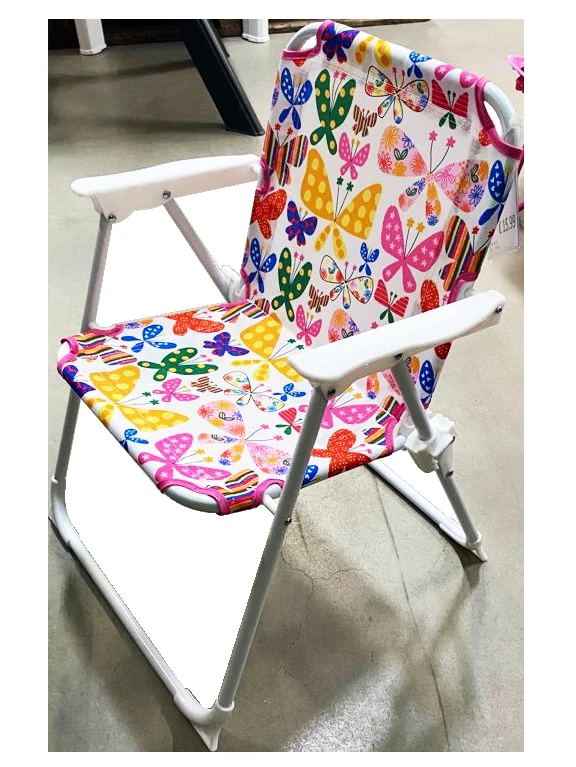 Saliekams kempinga krēsls bērniem ar roku balstiem. Sēdvieta izgatavota no 210D poliestera, rāmis no metāla caurulēm, cauruļu izmērs 13 x 0.6 mm. Krēsla izmērs 37 / 27 x 27 x 26 / 50 cm.
