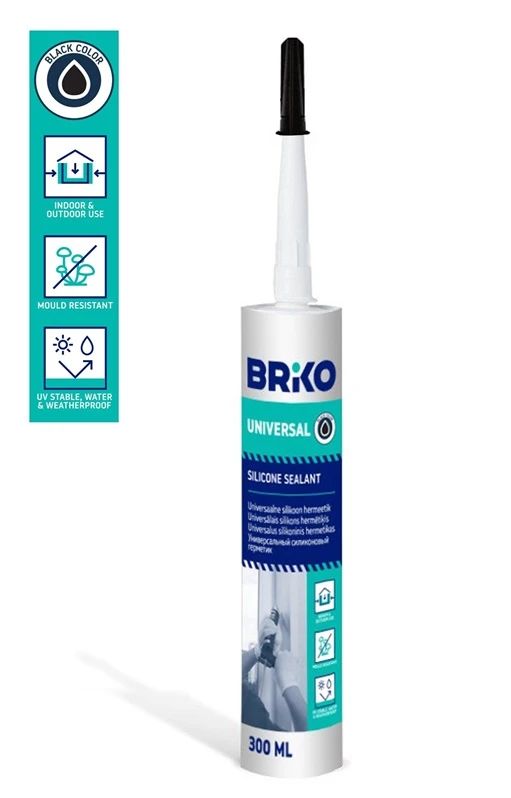 Zīmols- Briko. Kolekcija- –. Krāsa- Melna. Mērķis- izolācijai/hermetizēšanai. Tilpums- 0.3 l. Temperatūras izturība- -50 - 120°C. Izturīgs pret mitrumu- Nē. Izturīgs pret pelējumu- Nē. Lietošanas nosacījumi- Iekšējās telpas. Metāla apsmidzināšanai- Jā. Papildus informācija- Izmanto logiem. verandām. vitrīnām. veidnēm. logu un durvju blīvēm. sliekšņiem. palodzēm.