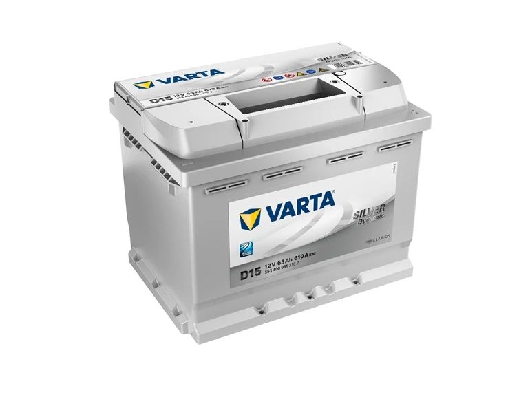 Zīmols- Varta. Modelis- SLI D15. Akumulatora tips- Svina skābes. Akumulators paredzēts- Automobiļiem. Spriegums- 12 V. Akumulatora kapacitāte- 63 Ah. Startēšanas strāvas jauda- 610 A. Polaritāte- - + . Garums- 24.2 cm. Platums- 17.5 cm. Augstums- 19 cm. Svars- 14.88 kg. Obligātā garantija- 24 mēn. Papildus informācija- Silver Dynamic.