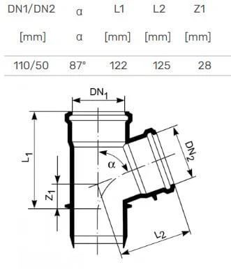 Zīmols- Magnaplast. Modelis- HTplus. Santehniskais savienojums. diametrs- 110 mm. 50 mm. 110 mm. Slīpuma leņķis- 87 - 87°. Elastīgs- Nē. Materiāls- Polipropilēns (PP). Krāsa- Pelēka. Paredzētas lietošanai- Iekštelpu kanalizācijai. Papildus informācija- Materiāls: Polipropilēns (PP). Diametrs: 110 / 50 mm. Leņķis: 90°. Krāsa: Pelēka.