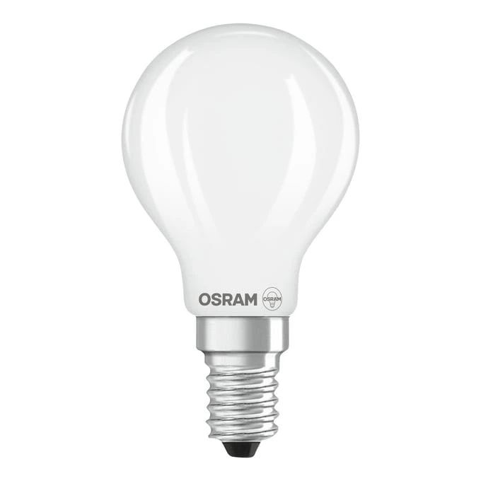Produkta veids- Lampiņas. Artikuls- 4099854468711. Zīmols- Osram. Spuldzītes tips- LED. Garums- 45 - 45mm. Platums- 45 - 45mm. Augstums- 78 - 78mm. Spriegums- 220 - 240V. Cokols- E14. Gaismas plūsma- 470 - 470lm. Spuldzītes forma- Apļveida/burbulis. Apgaismojuma krāsa- Silti balta. Krāsas temperatūra- 2700 - 2700°K. Virsmas/stikla veids- Matēts. Lampas apgaismojuma regulators- Nē. Spuldzītes apzīmējums- P45. Krāsu atveidošanas indekss (CRI)- 80. Spuldzītes efektivitāte- 117 lm/W. Energoefektivitātes klase- E. Vidējais nominālais ekspluatācijas laiks- 15000 h. Ar reflektoru- Nē. Bezvadu savienojums (Wi-Fi)- Nē. Ar tālvadības pulti- Nē. Attālinātās vadības funkcija- Nē. Vienību skaits iepakojumā- 1. Papildus informācija- Ekvivalents 40 W standarta spuldzei. Obligātā garantija- 24 mēn.