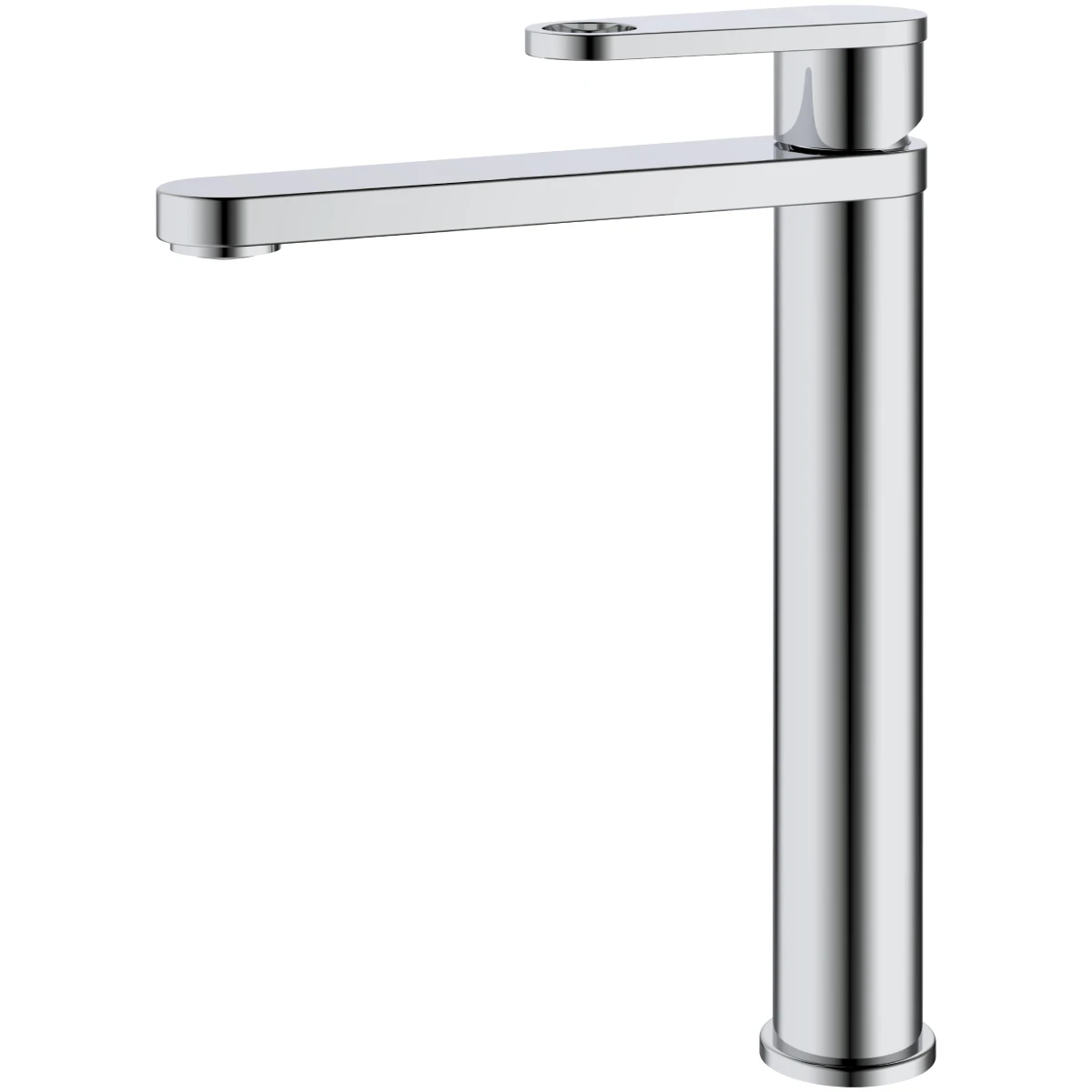 Augstais jaucējkrāns AB CHLOE ar izteikti tīru siluetu un spīdīgu hromētu pārklājumu ir eleganta izvēle uz virsmas uzliekamai izlietnei. Tā vertikālā forma nodrošina ērtu lietošanu un pietiekami daudz vietas zem iztekas, padarot to ideāli piemērotu ikdienas lietošanai. Vienas sviras vadība ļauj precīzi kontrolēt ūdens plūsmu un temperatūru, savukārt cilindriskā pamatne un taisnais snīpis piešķir mūsdienīgu akcentu vannas istabas interjeram. Viegla uzstādīšana un viegli kopjamā virsma padara šo krānu praktisku un stilīgu vienlaikus.