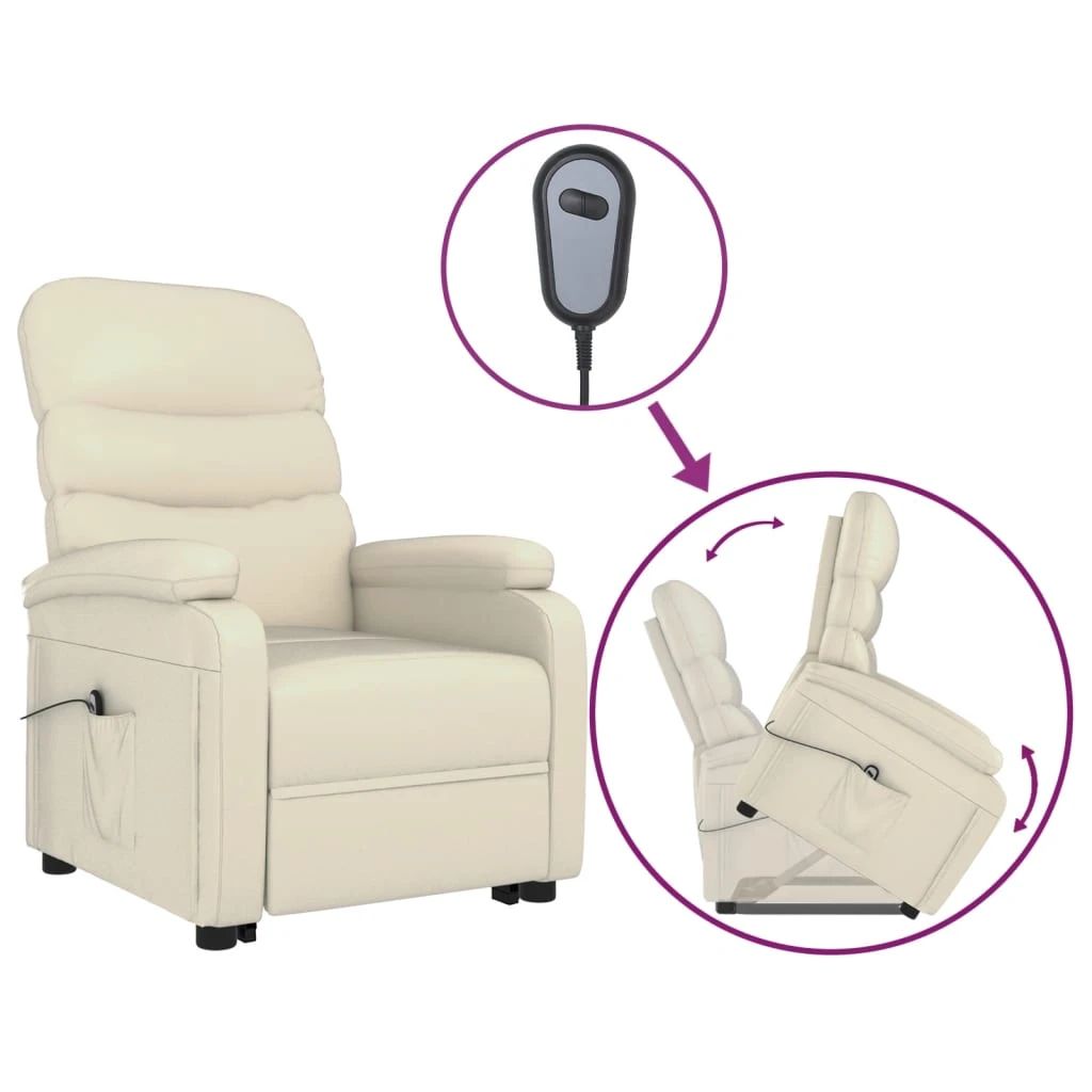 vidaXL atpūtas krēsls, paceļams, krēmbalta mākslīgā āda