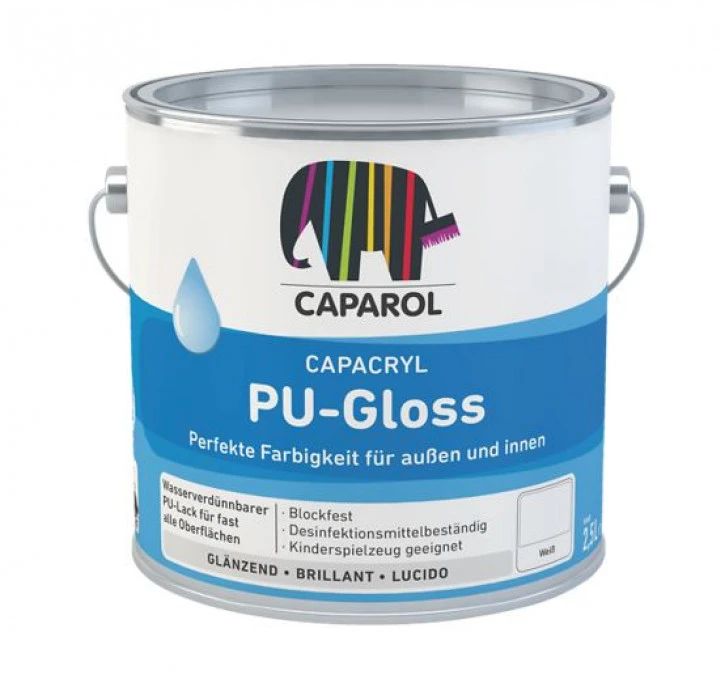 Zīmols- Caparol. Modelis- Capacryl Pu-gloss. Krāsas tips- Emulsija. Emaljas tips- Akrila. Krāsas tonis- Balta. Spīdums- Spīdīga. Atšķaidītājs- Ūdens. Apdares darbiem- Iekštelpu un āra. Krāsas funkcija- Mēbeles. Patēriņš- 100-120 ml/m2. Piemērots karstas iedarbības virsmām- Nē. Pilnīgi sausa pēc- 24 - 24h.