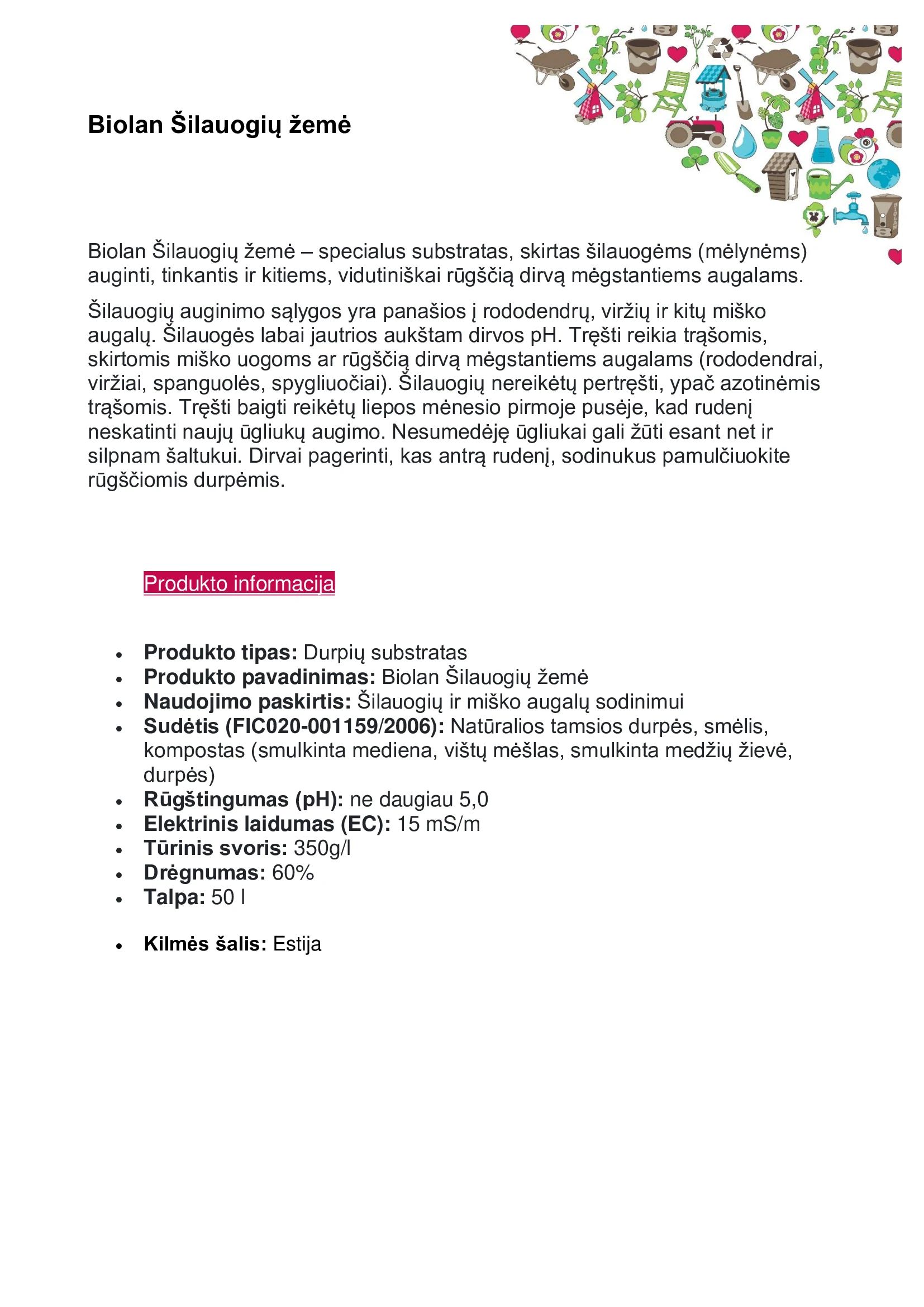 Zīmols- Biolan. Tilpums- 50 l. Maisījuma veids- Augsne. Maisījuma pielāgošana- Mellenēm. Mērķis- Mellenēm un citiem skābmīlošiem augiem, piemēram, rododendriem, viršiem, dzērvenēm, skujkokiem un citām meža ogām.. Obligātā garantija- 24 mēn. Papildus informācija- Maisījuma veids: Augsne. Maisījuma pielāgošana: Ogas.
