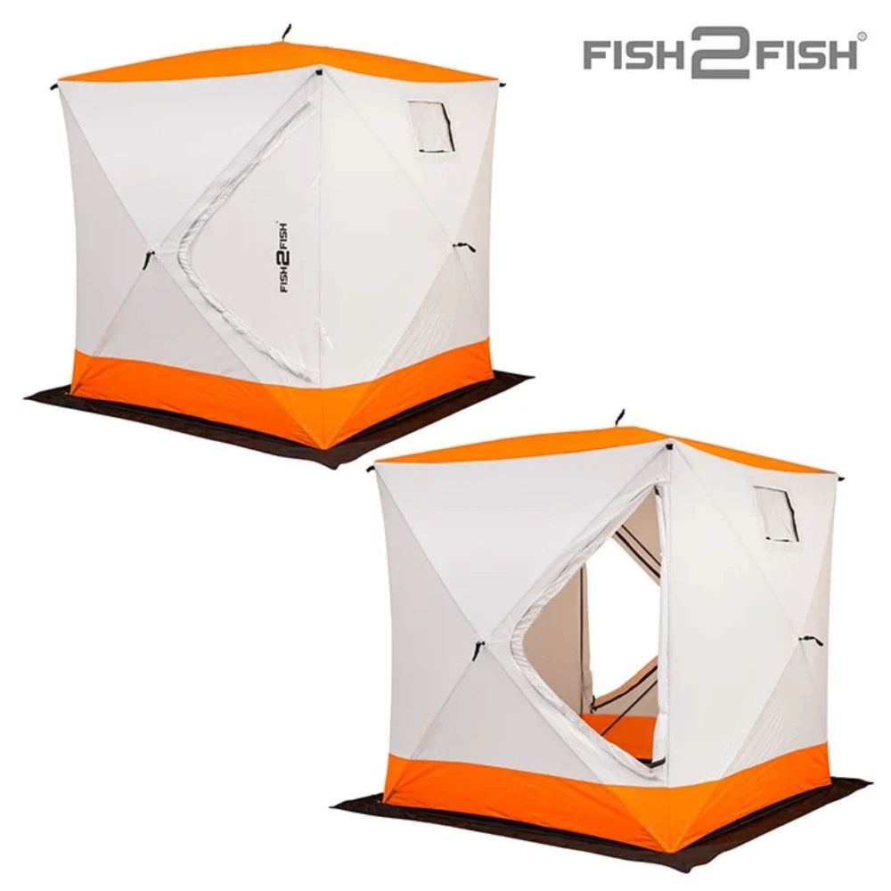Ziemas telts Fish2Fish Cube I (kompozīta rāmis) ir izgatavota kuba formā. Tagad jūs varat urbt caurumus tieši uzceltajā teltī. Fish2Fish Cube ziemas telts izmēri ļauj bez neērtībām izurbt caurumus, atrodoties iekšā. Atšķirībā no klasiskajām teltīm vai lietussargiem Fish2Fish Cube I ziemas telts ir vēja necaurlaidīgāka. Pateicoties tā dizainam, telts var izturēt spēcīgu vēju. Viegli uzstādīt vienam cilvēkam jebkuros laikapstākļos. Markīzei ir 2 logi, kas izgatavoti no sala izturīgas caurspīdīgas PVC plēves uz kontaktlentas (pilnībā noņemama) ar papildus aizveramu auduma atloku. Ērta kabata nojumes iekšējā sienā. Galvenā krāsa ir balta ar krāsainu jumtu un sliekšņiem. Ērts pārsegs ļauj ērti nolikt pat aizsalušu patversmi pēc makšķerēšanas!