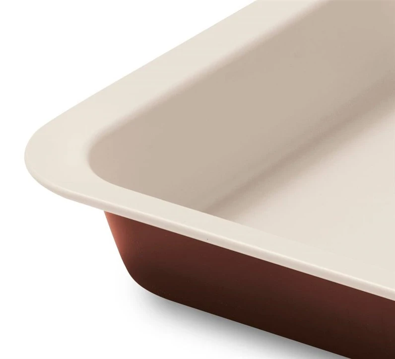 Preču zīmols - Domoletti. Artikuls - 00740KSE. Garums - 28 cm. Platums - 22 cm. Augstums - 5 cm. Krāsa - Dažādu krāsu. Materiāls - Tērauds. Cepšanas formas/tvertnes tips - Konditorejai. Ar vāku - Nē. Garantija - 24 mēn. Papildus informācija - Pirms cepšanas tvertnes iekšpusi ieziež ar ēdamo eļļu, sviestu vai margarīnu. Nelietojiet nažu vai citu asu priekšmetu, lai nesabojātu pārklājumu. Piemērots saskarei ar pārtiku.