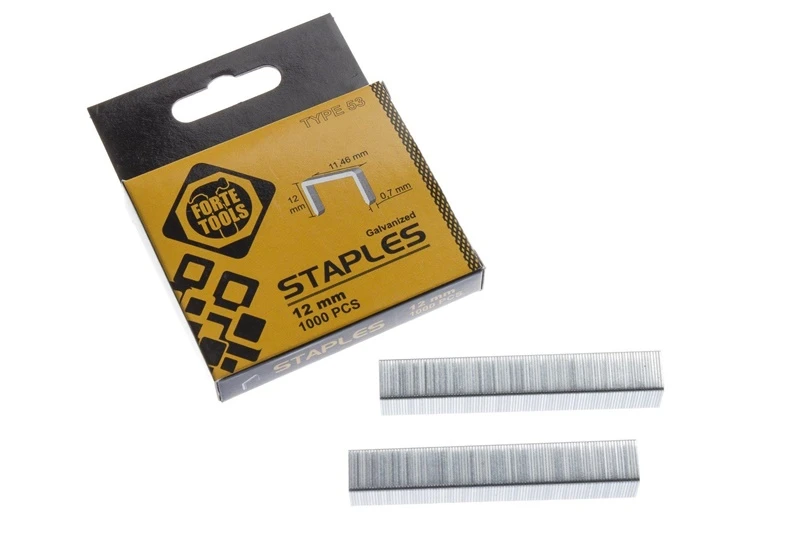 Zīmols- Forte Tools. Garums- 11.46 mm. Platums- 0.7 mm. Krāsa- Sudraba. Materiāls- Metāls. Vienību skaits iepakojumā- 1000. Skavas / Vītnes tips- 53. Papildus informācija- Materiāls: Nerūsējošais tērauds.