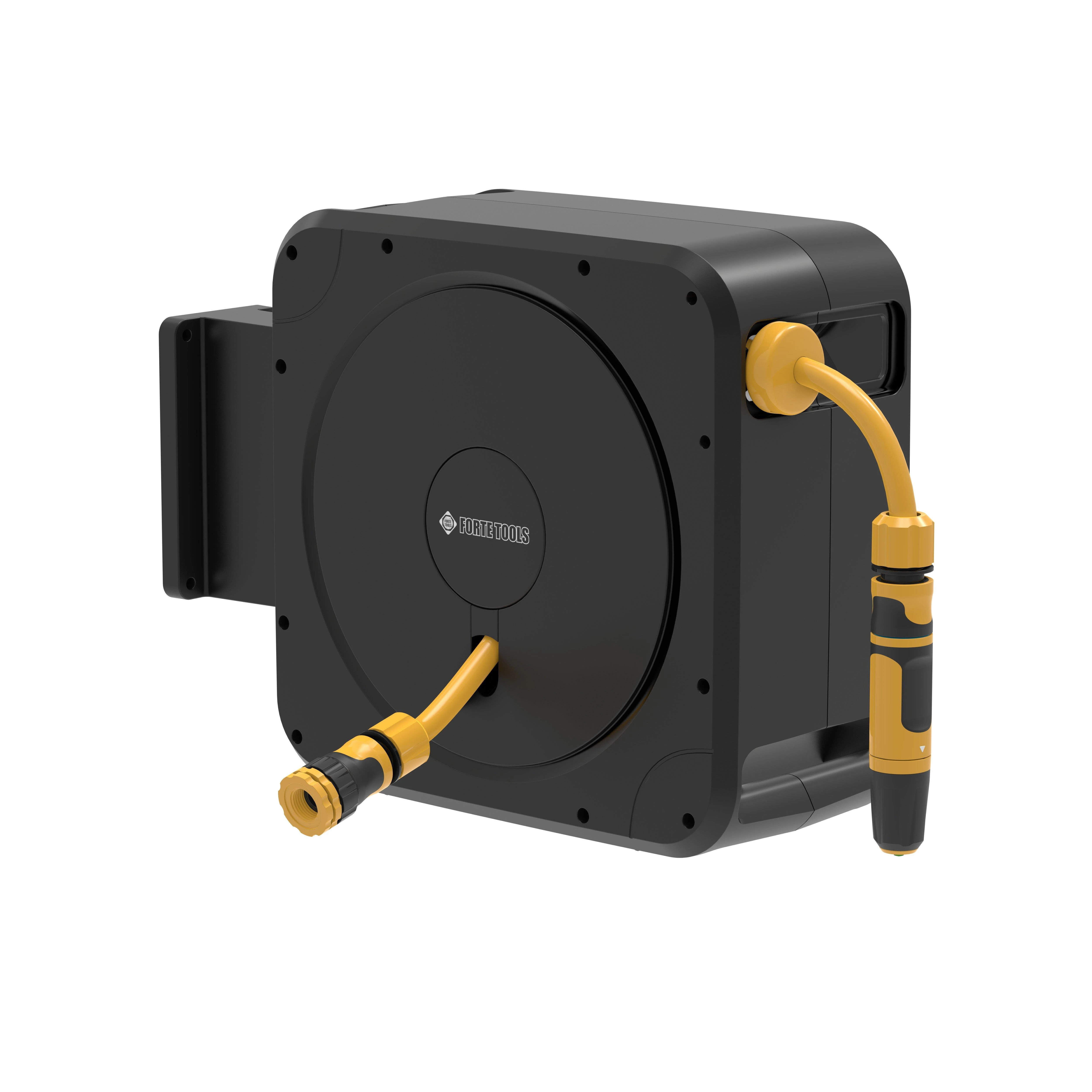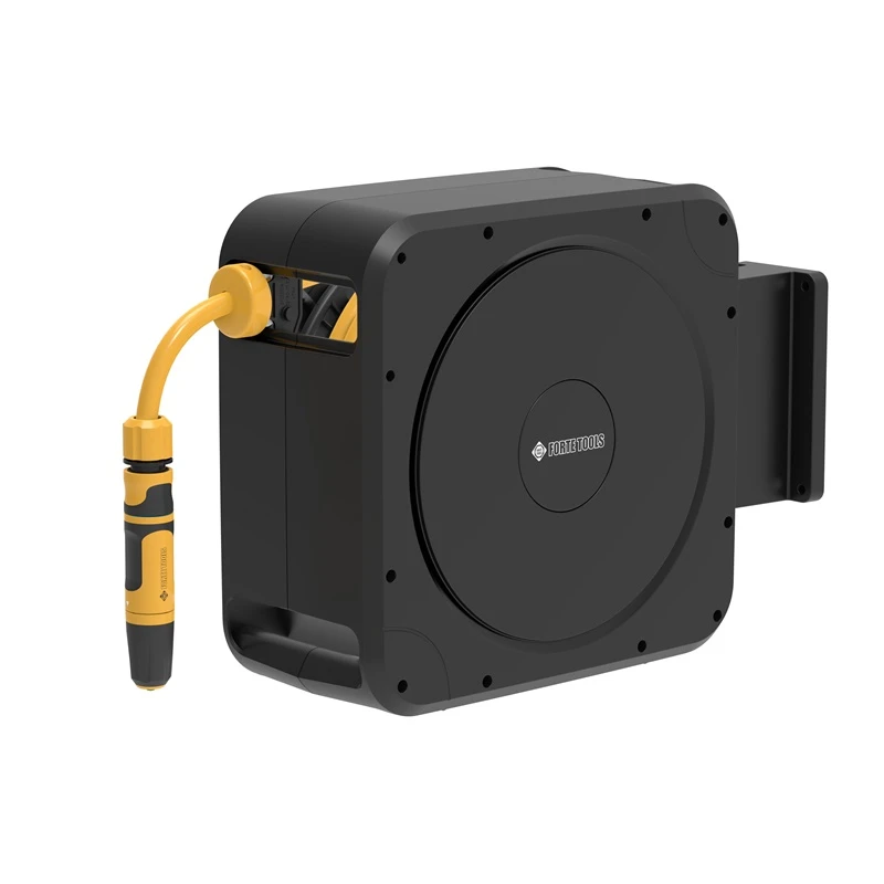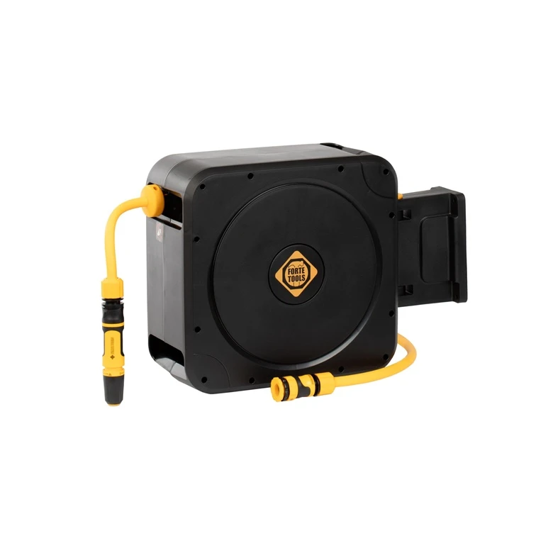 Preču zīmols - Forte Tools. Artikuls - 55-410FT. Svars - 8 kg. Garums - 38.7 cm. Platums - 22.7 cm. Augstums - 49.6 cm. Materiāls - Plastmasa. Žarnu vītņošanas iekārtas tips - Ritē. Garantija - 24 mēn. Papildu informācija - Izgatavots no augstākās kvalitātes UV izturīga materiāla. Griešanās ātrumu regulē efektīvs bremžu mehānisms. Komplektā ir aizsardzība pret savērpšanos, kas aizsargā ēkas fasādi no bojājumiem. Stabils sienas stiprinājums ļauj droši piestiprināt ritē pie sienas un pagriezt to par 180°. Ergonomiskas rokturi abās pusēs atvieglo tās nēsāšanu un pakarināšanu. Komplektā ietilpst: automātiskā žarnas ritē ERGO™, sienas stiprinājums, dārza žarna 1/2“ 20 m, savienojošā žarna 2 m, regulējams žarnas galgalis ERGO™ (53-300), žarnas ātrā savienojuma - galva un ūdens plūsma ERGO™ (53-130, 53-120), universāls ar iekšējo vītni savienojums ERGO™ G1/2”, G3/4”, G1” (53-210)..