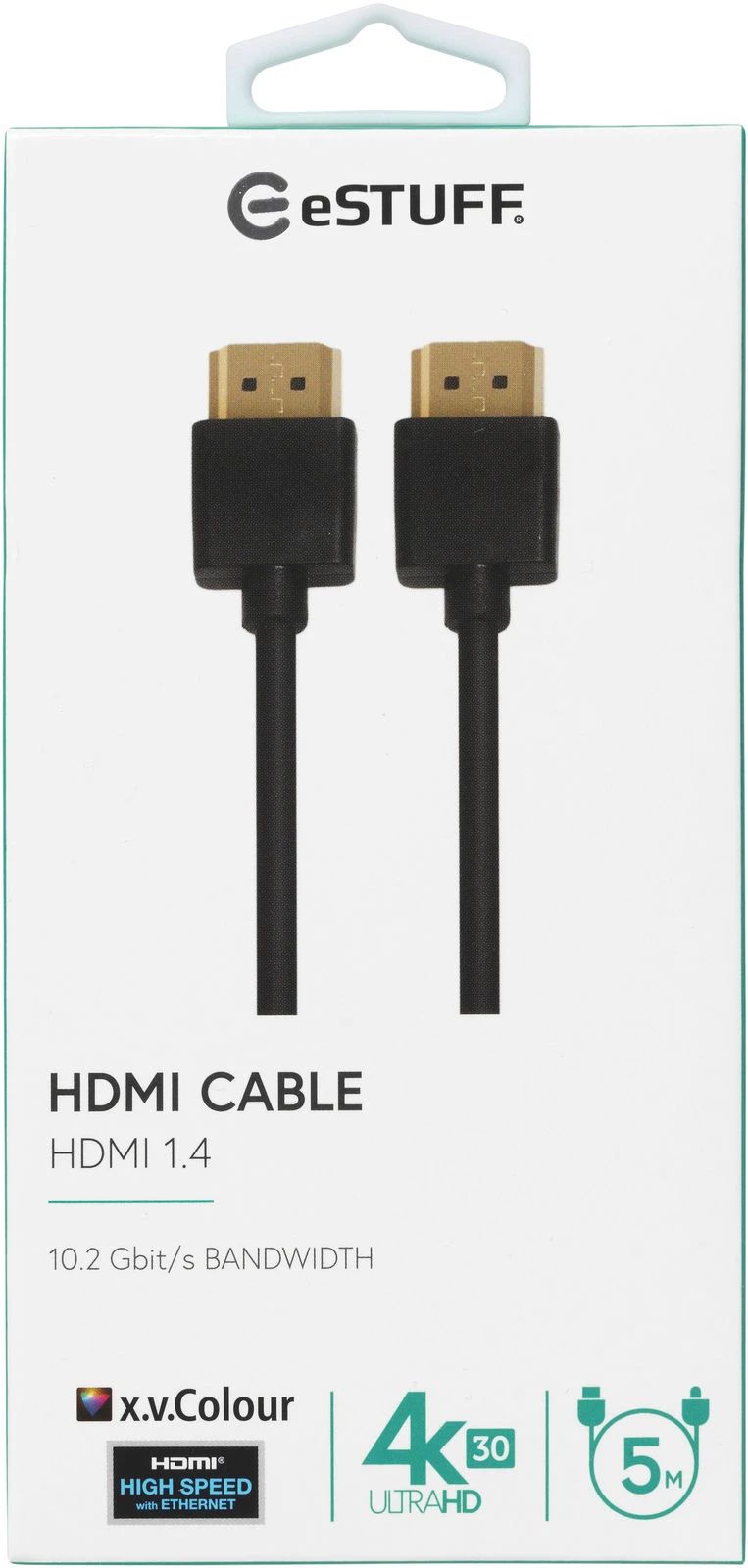 Zīmols- Estuff. Modelis- ES606004. Krāsa- Melna. Pirmais kabeļa savienojums- HDMI. Otrais kabeļa savienojums- HDMI. Vada garums- 5 m. Obligātā garantija- 24 mēn. Papildus informācija- Krāsa: Melna.