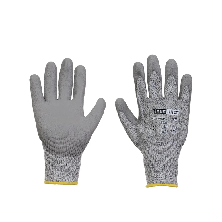 Zīmols- Haushalt. Modelis- C22NHUH. Materiāls- Poliuretāns. Stikla šķiedra. Polietilēns (PE). Krāsa- Pelēka. Pārklājuma materiāls- Poliuretāns. Izmērs- 8/M. Cimdu tips- Pretgriezumiem. Ar aizdari- Nē. Ar siltinājumu- Nē. Ar PVC punktiņiem- Nē. Divpusēji cimdi- Nē.