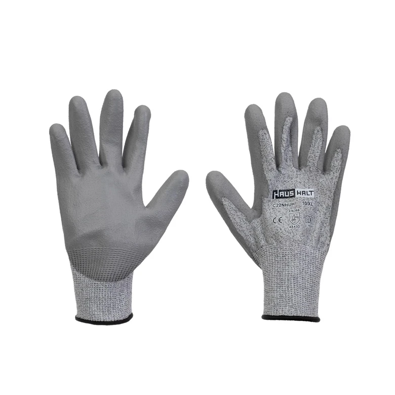 Zīmols- Haushalt. Modelis- C22NHUH. Materiāls- Poliuretāns, Stikla šķiedras, Politelēns (PE). Krāsa- Pelēka. Tīrīšanas materiāls- Poliuretāna. Izmērs- 10/XL. Cimdu tips- Pret sagriešanu izturīgi. Ar magnētisku aizdari- Nē. Ar siltinājumu- Nē. Ar PVC punktiem- Nē. Divpusēji cimdi- Nē. Obligātā garantija- 24 mēn. Garantija juridiskām personām- 12 mēn.
