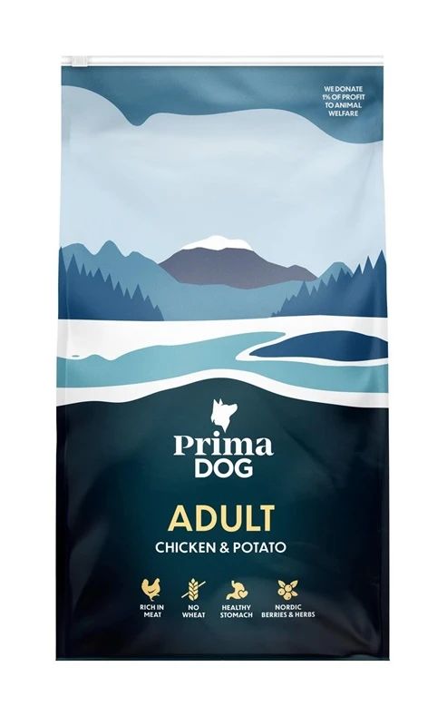 Zīmols- Prima Dog. Modelis- Chicken & Potato. Svars- 10 kg. Barība suņiem- Pieaugušajiem. Suņa izmērs- Universāls. Pamatsastāvs- Vistas gaļa. Kartupeļi. Sastāvs- Sastāvs: dehidrēta vistas gaļa 25%. kartupeļi. vistas gaļas milti 15%. kukurūza. vistas tauki (konservēti ar jauktiem tokoferoliem. E vitamīna avots) 6%. žāvēti āboli. alus raugs. hidrolizētas vistas aknas 3%. lašu eļļa. Jukas Šidigera ekstrakts. mannan-oligosaharīdi. frukto-oligosaharīdi. dzērvenes 100 mg/kg. lācenes 100 mg/kg (Rubus Chamaemorus). smiltsērkšķi 100 mg/kg (Hippophae rhamnoides). dilles 100 mg/kg (Anethum graveolens). Analītiskais sastāvs: kopproteīns 25.0%. koptauki 15.0%. kopšķiedra 2.8%. mitrums 10.0%. koppelna 7.0%. kalcijs 1.6%. fosfors 1.2%. Metabolizējamā enerģija – 3 750 kcal/kg. Barības piedevas 1 kg: A vitamīns 18 000 SV. D3 vitamīns 1 800 SV. E vitamīns (α-tokoferols) 450 mg. varš 15 mg. dzelzs 75 mg. mangāns 40 mg. cinks 90 mg. jods 0.7 mg. selēns 0.25 mg. Satur ES apstiprinātus antioksidantus..