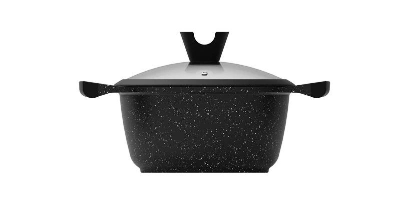 Zīmols- Domoletti. Diametrs- 20 cm. Krāsa- Melna. Materiāls- Alumīnijs. Ar vāku- Jā. Virsmas pārklājums- Granīta graudiņi, Nepiedegošais pārklājums. Var mazgāt trauku mazgājamā mašīnā- Jā. Piemērots plītīm- Indukcijas, Gāzes, Elektriskā, Halogēnā. Obligātā garantija- 24 mēn.