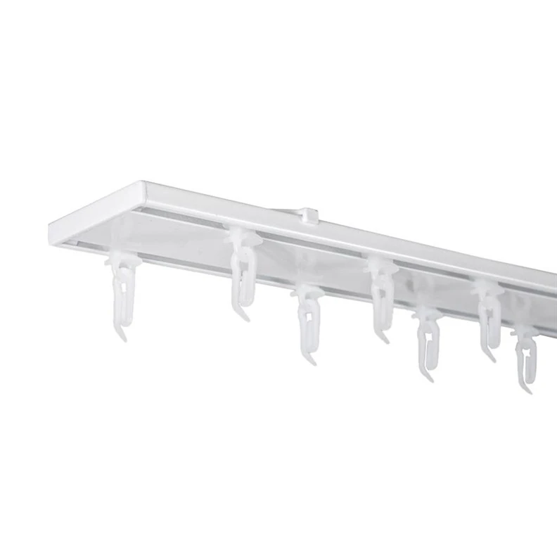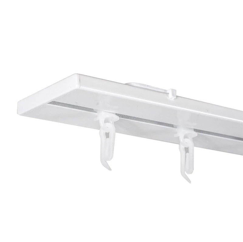 Zīmols- Domoletti. Garums- 150 - 150cm. Krāsa- Balta. Materiāls- Metāls. Stiprinājuma veids- Griestu. Stiprinājumi komplektā- Jā. Sliežu skaits- 3. Stiprinājumu skaits- 8. Papildus informācija- Alumīnija profils "UNIVERSAL" 1 un 2 sliedes balts sp. (1.5) Stiprinājuma kronšteins pl. līdz griestiem 1 sliedes alumīnija profilam "UNIVERSAL" balts sp. (Nr. 50) (4) Stiprinājuma kronšteins pl. līdz griestiem 2 sliedes alumīnija profilam "UNIVERSAL" balts sp. (Nr. 60) (4).Pabeigt pl. alumīnija profilam "UNIVERSAL" 1 un 2 sliedes balts sp. (Nr.51) (2).Plastmasa. bīdāmā cilpa āķim un met. balts sp. (Nr. 10665) (30).Plastmasa. viens āķis bīdāmās cilpas balts sp. (Nr. 2571) (30). Uzstādīšanas instrukcija "UNIVERSĀLA" (1).
