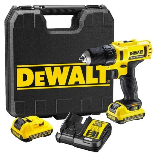Komplektā: Lādētājs, divas 2 Ah baterijas, urbjmašīna.