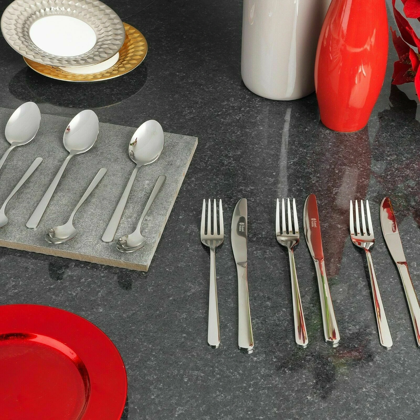 Russell Hobbs Deluxe Vīnes galda piederumu komplekts, ir lieliski piemērots kā sākuma komplekts vai galda piederumu papildinājums, tas ir izsmalcināts un mūžīgs papildinājums jūsu mājām. Komplektā ietilpst četri naži, četras dakšiņas, četras galda karotes un četras tējkarotes ar nerūsējošā tērauda 18/0 spoguļa apdari; ideāli piemērots ģimenēm vai viesu pieņemšanai. Šis prasmīgi izgatavotais komplekts ir izstrādāts tā, lai to varētu mazgāt trauku mazgājamajā mašīnā, padarot tīrīšanu pēc ēšanas ātru un vienkāršu.
