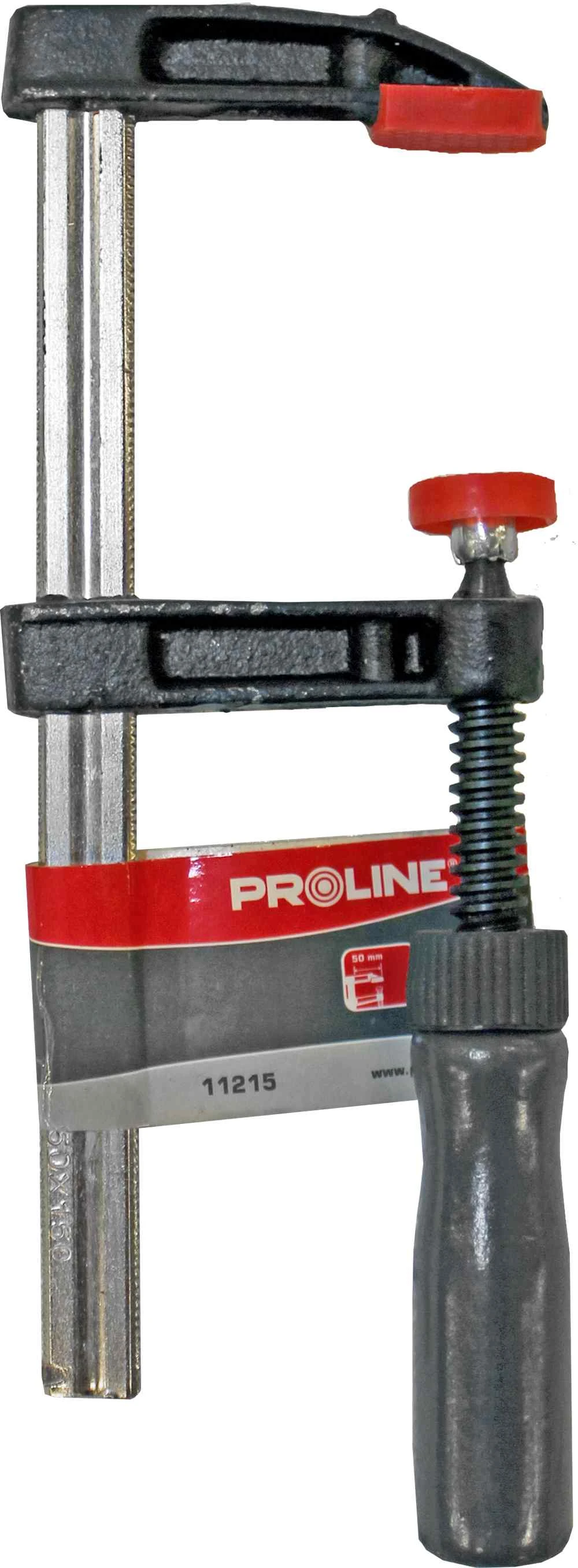Koka spiede Proline 150 x 50 mm. Izgatavota no tērauda un apdarināta ar plastmasas vāciņiem, koka rokturis. Piemērota lieliem priekšmetiem. Īpaša trapecveida skrūve un rievota vadotne nodrošina lielisku fiksāciju grūti aizsniedzamās vietās.