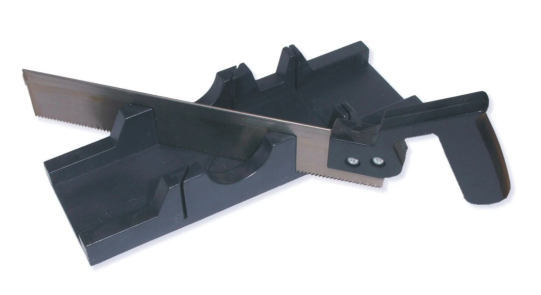 Rokas zāģis ar šablonu. Lieliski piemērots precīzu griezumu veikšanai 45° un 90° leņķos. Šablona garums 295 mm, platums 95 mm, iekšējās platums 68 mm, augstums 50 mm. Zāģa garums 300 mm.