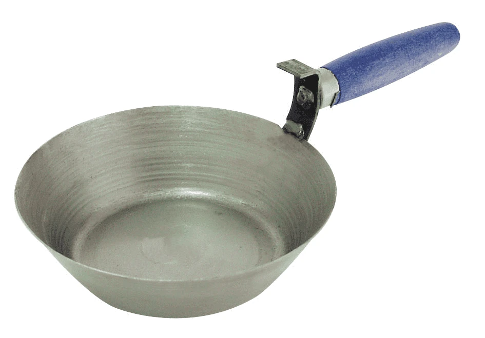 Kauss mūrēšanas un apmešanas darbiem. Kauss izgatavots no tērauda, rokturis no koka. Kausa diametrs 173 mm, dziļums ~45 mm.