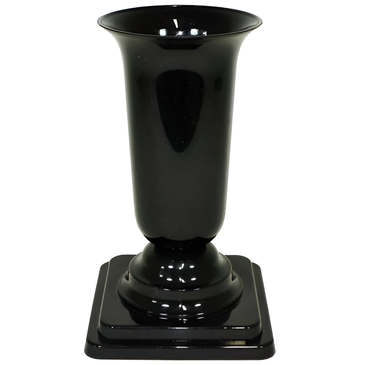Melna vāze uz stabila paliktņa. Izgatavota no augstas kvalitātes plastmasas, pieērota lietošanai ārā. Izmērs (D x A) 13 x 26.7 cm, tilpums 1.2 l.