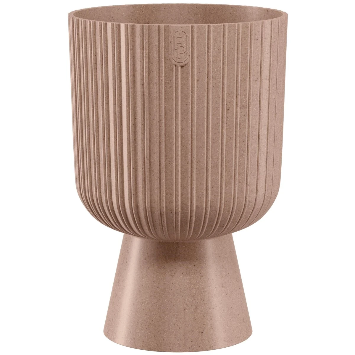 Brūns puķu pods Keli Mika Eco Wood. Elegants un oriģināls puķu pods kausa formā, izgatavots no augstas kvalitātes plastmasas ar līdz pat 35% koka piejaukumu. Tas ir viegls, izturīgs un lieliski iederas gan modernā, gan tradicionālā interjerā. Mūsdienīgais dizains un vienkāršā forma ļauj tam harmoniski iekļauties dažādos telpu noformējumos. Puķu pods ir paredzēts lietošanai visu gadu, izturīgs pret salu un UV starojumu. Izmērs (D x A) 18 x 26 cm.