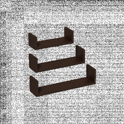 Trīs dažādu izmēru U-formas piekaramo plauktu komplekts tumši brūnā krāsā. Plauktus var uzstādīt jebkurā telpā. Tiem ir iekšējie kronšteini, pateicoties kuriem tie tiek piestiprināti pie sienas absolūti neredzamā veidā. Plauktus pie sienas ir jāpiestiprina ar sienas veidam atbilstošām skrūvēm un dībeļiem. Plauktu izmēri (G x P x A) - 420 x 100 x 100 mm, 340 x 100 x 88 mm, 260 x 100 x 76 mm.