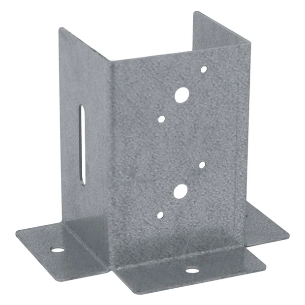 Stiprinājums atvieglo koka elementu montāžu pie betona, nodrošina pareizu koka dilatāciju no zemes. Izgatavots no cinkota tērauda DX51D + Z275, biezums 2 mm. Piemērotie stiprinājumi - enkurnaglas ø 4 mm, kokskrūves ø 6 mm, ø 10 mm, skrūves M6, M10, betona enkuri M6, M10. Izmērs 65 x 71 x 150 x 2 mm.