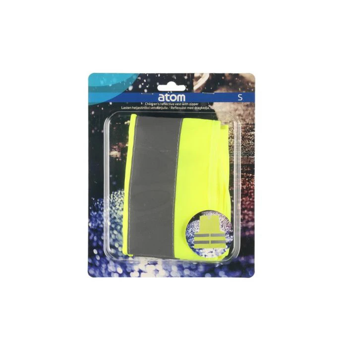 Atom atstarojošā drošības veste bērniem, kas nodrošina labu redzamību āra aktivitāšu un ikdienas pārvietošanās laikā. Veste ir izgatavota no viegla poliestera, aprīkota ar ērtu rāvējslēdzēju un to ir viegli uzvilkt un novilkt pat pašiem bērniem. Dzeltenā krāsa ar atstarojošām lentēm padara to labi pamanāmu diennakts tumšajā laikā. Sertificēta atbilstoši EN17343:2020 tipa B3 standartam, tā ir droša un uzticama izvēle bērnu drošībai uz ceļa vai rotaļās. Ideāli piemērota skolai, pārgājieniem vai velobraucieniem. Izmērs S (auguma garums 85 - 115 cm, krūšu apkārtmērs 52 - 57 cm).