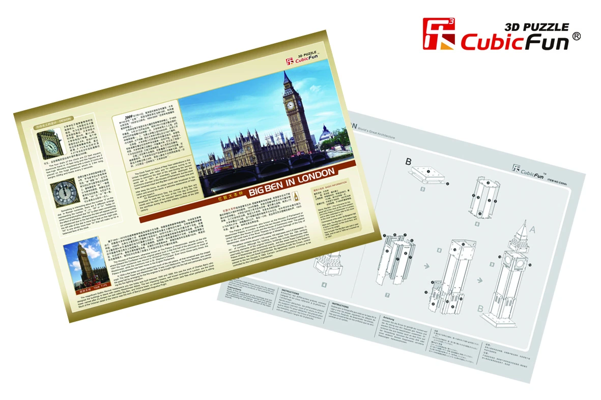 Kõigile meeldib puslet kokku panna, see on nii lõbus kui ka hariv tegevus. Pusled on suurepärased nii omaette või koos mängimiseks. Big Ben on Londoni kesklinnas Westminsteri palee põhjapoolses kellatornis asuv suur kellatorn - 3D pusle, mis pakub ehitamisel väljakutseid aga ka rohkelt rõõmu. Tulemuseks on atraktiivne kolmemõõtmeline makett, mis on ehteks igas kodus või kontoris. Pusleplaadid on valmistatud paberi ja vahtpolüstürooli segust, mida on kerge kokku panna. Liimi ja kääre ei ole vaja kasutada. Valmispusle mõõdud: 11,7 x 11,7 x 51,7 cm.