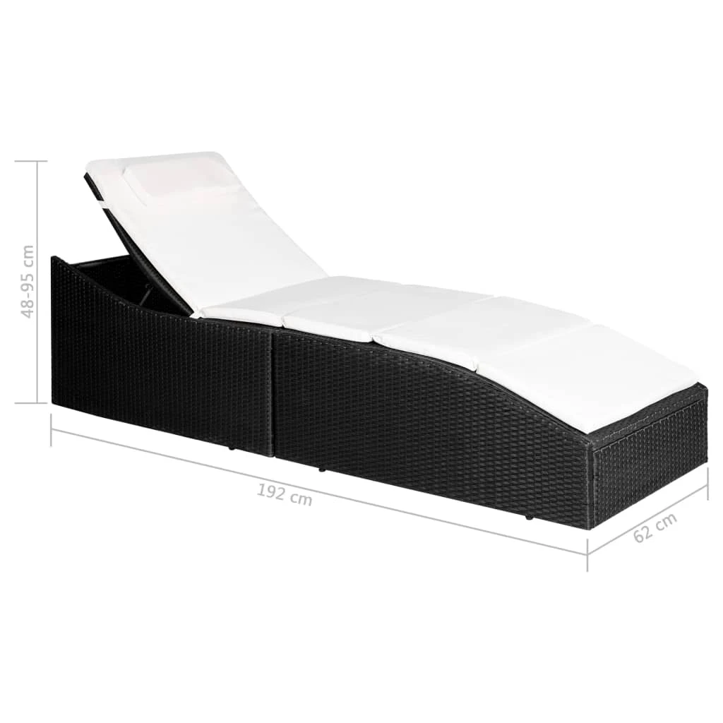 vidaXL sauļošanās zvilnis ar matraci, melna PE rotangpalma